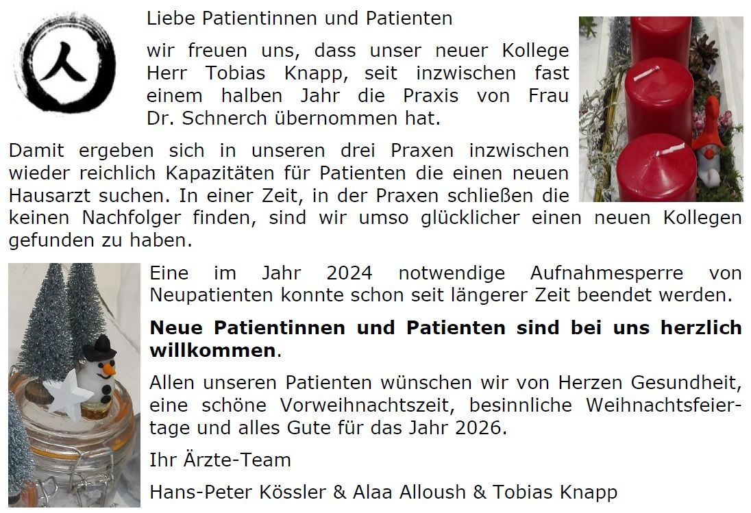 Schauen Sie regelmäßig unter „Aktuelles“ vorbei – hier informieren wir Sie über wichtige Themen wie Urlaubszeiten, neue Leistungen oder Gesundheitstipps.